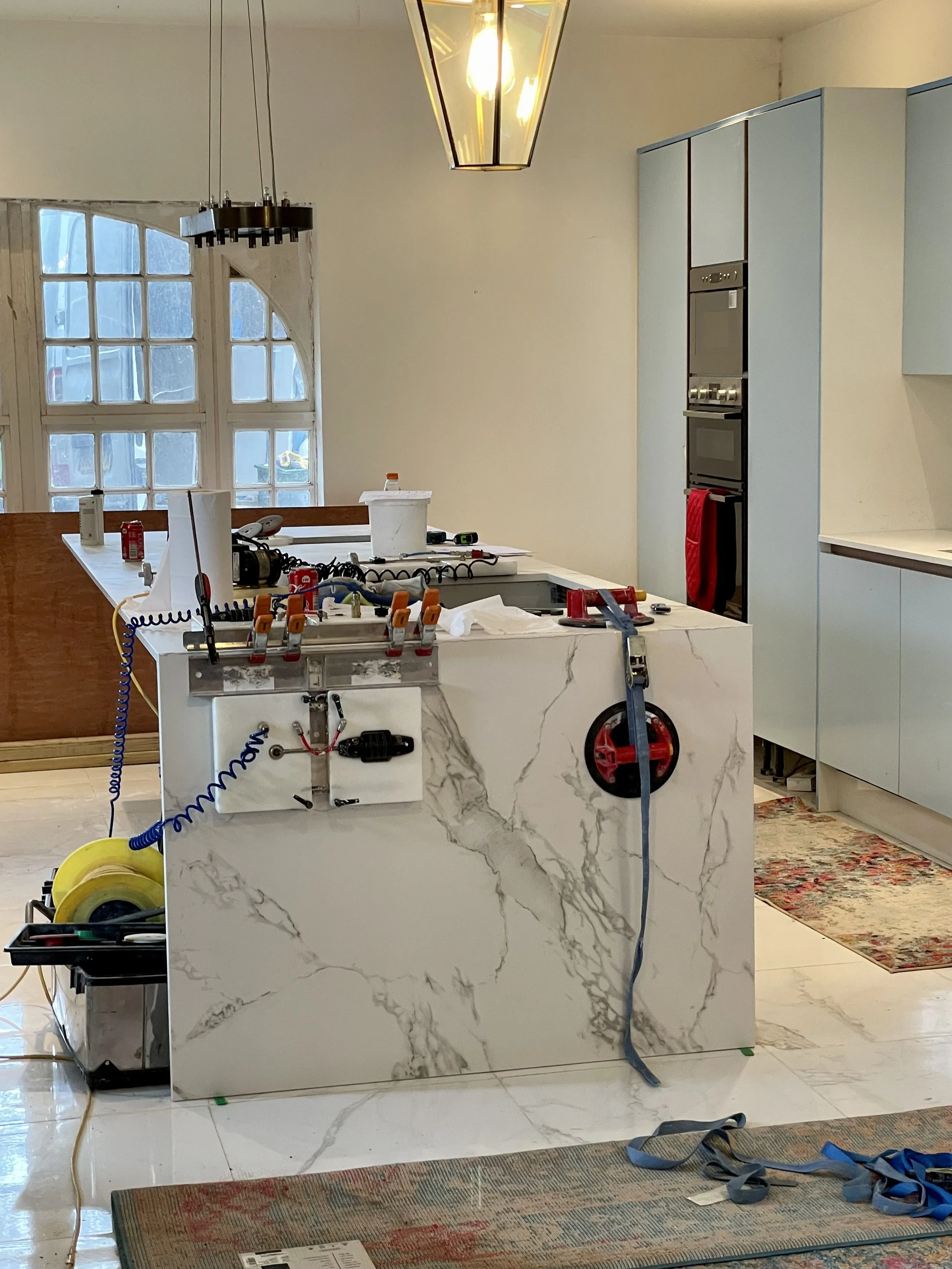 Every home renovation project, invariably comes with its own unique set of challenges that has the potential to steer a project trajectory off course. This project is no exception. Upon commencement of the site works to create the open-plan living space, works quickly came to a grinding halt when a shabbily cast 12-inch deep concrete slab was discovered resting atop the existing utility room walls, earmarked for demolition. The single skin utility walls bearing the weight of the concrete slab, were so poorly constructed that any disturbances to these walls, risked not only the entire slab crashing down, but also compromising the integrity of the structural wall they were pinned to, that was also to be demolished.